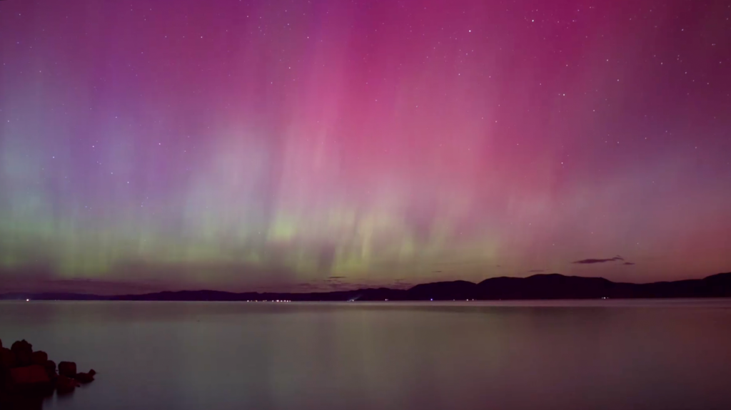 A large solar storm produced a series of coronal mass ejections in May 2024, causing beautiful auroral displays to be seen all over the globe. In Utah, much farther south than auroras are normally visible, NASA writer and producer Bill Dunford caught the multicolor phenomena dancing with their reflections over Bear Lake on May 11, 2024.