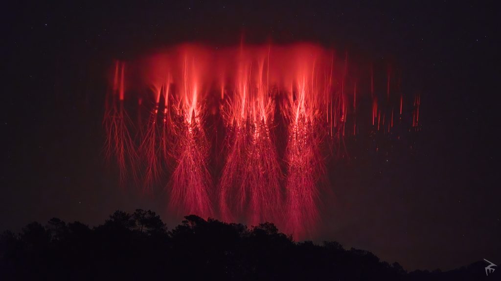 Sprites are a type of electrical discharge called a transient luminous event that can occur above powerful thunderstorms. The flashes last only a fraction of a second and can be categorized by their shapes. These jellyfish sprites were captured by sprite-chaser Nicolas Escurat in Dordogne, France, on Nov. 1, 2022. Escurat is an active contributor to NASA’s Spritacular citizen science project. To learn more about the project and see how you can participate, visit https://spritacular.org/.